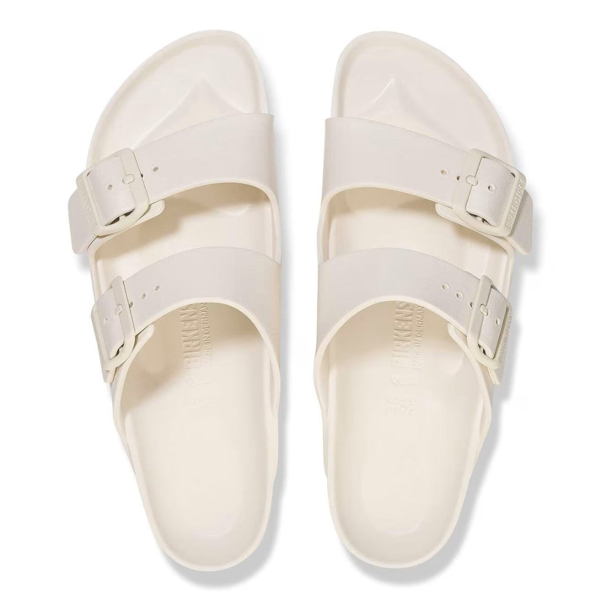 Pair of Birkenstock Eggshell sandals with buckles