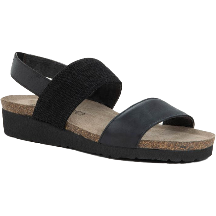 Naot Amy Wide Sandal - Shiny Black Leather/Black Elastic