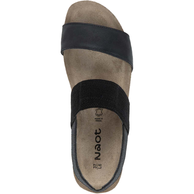 Naot Amy Wide Sandal - Shiny Black Leather/Black Elastic top down