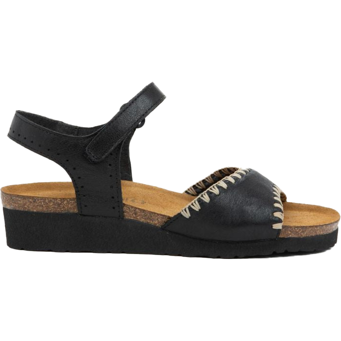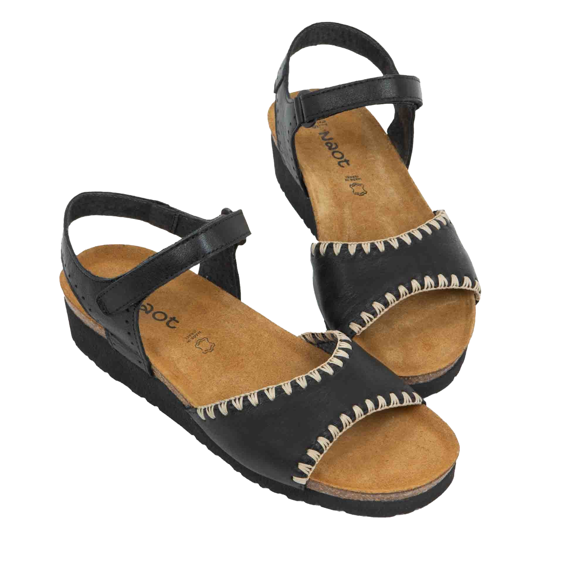 Meet the women’s Naot Luna, a stylish sandal designed for all-day comfort. Contrast stitching adds a modern touch, while the adjustable hook-and-loop ankle strap ensures a secure, easy fit. Naot’s signature anatomic cork and latex footbed, wrapped in soft suede, molds to your foot over time for personalized comfort. APMA accepted, the Luna delivers supportive comfort with effortless everyday style.