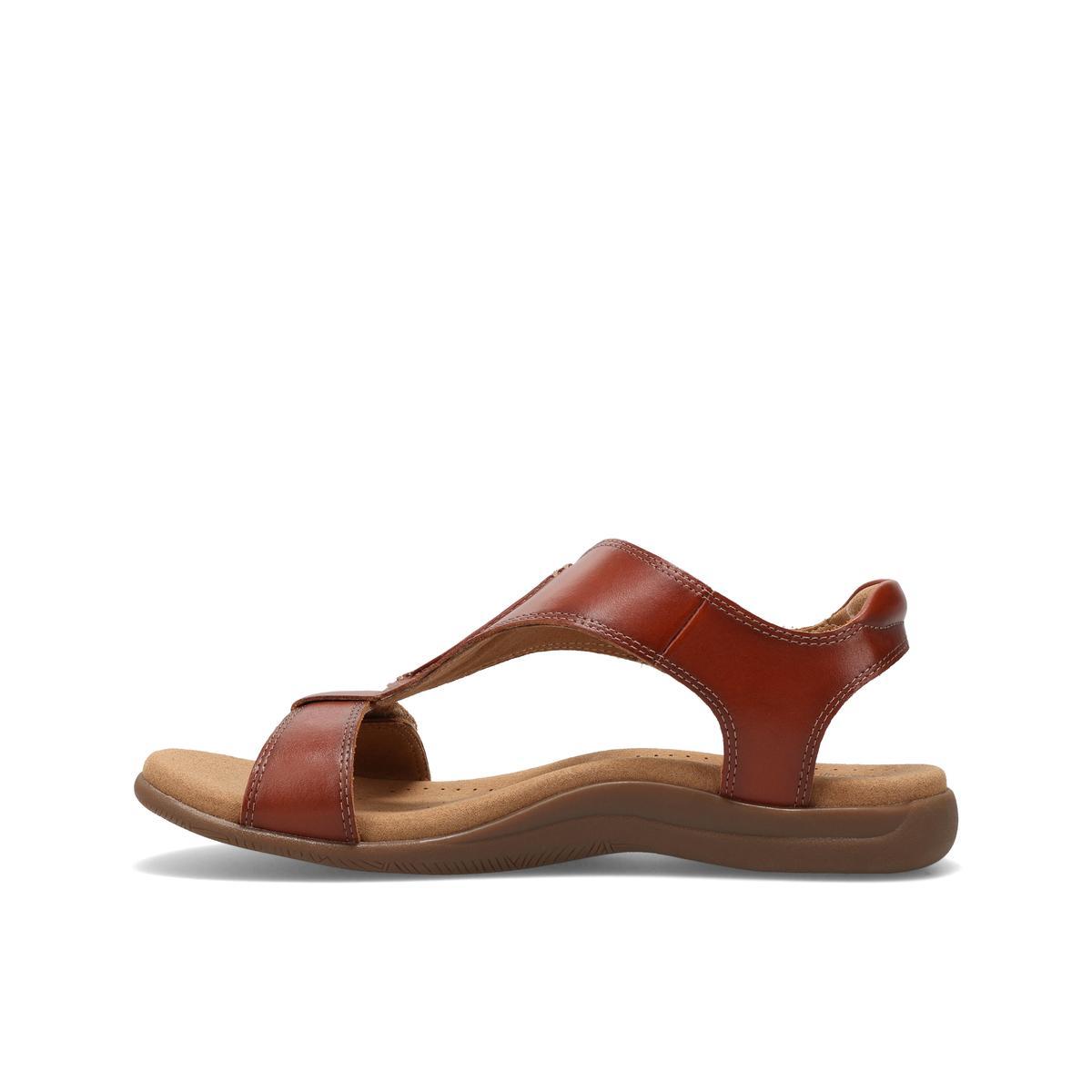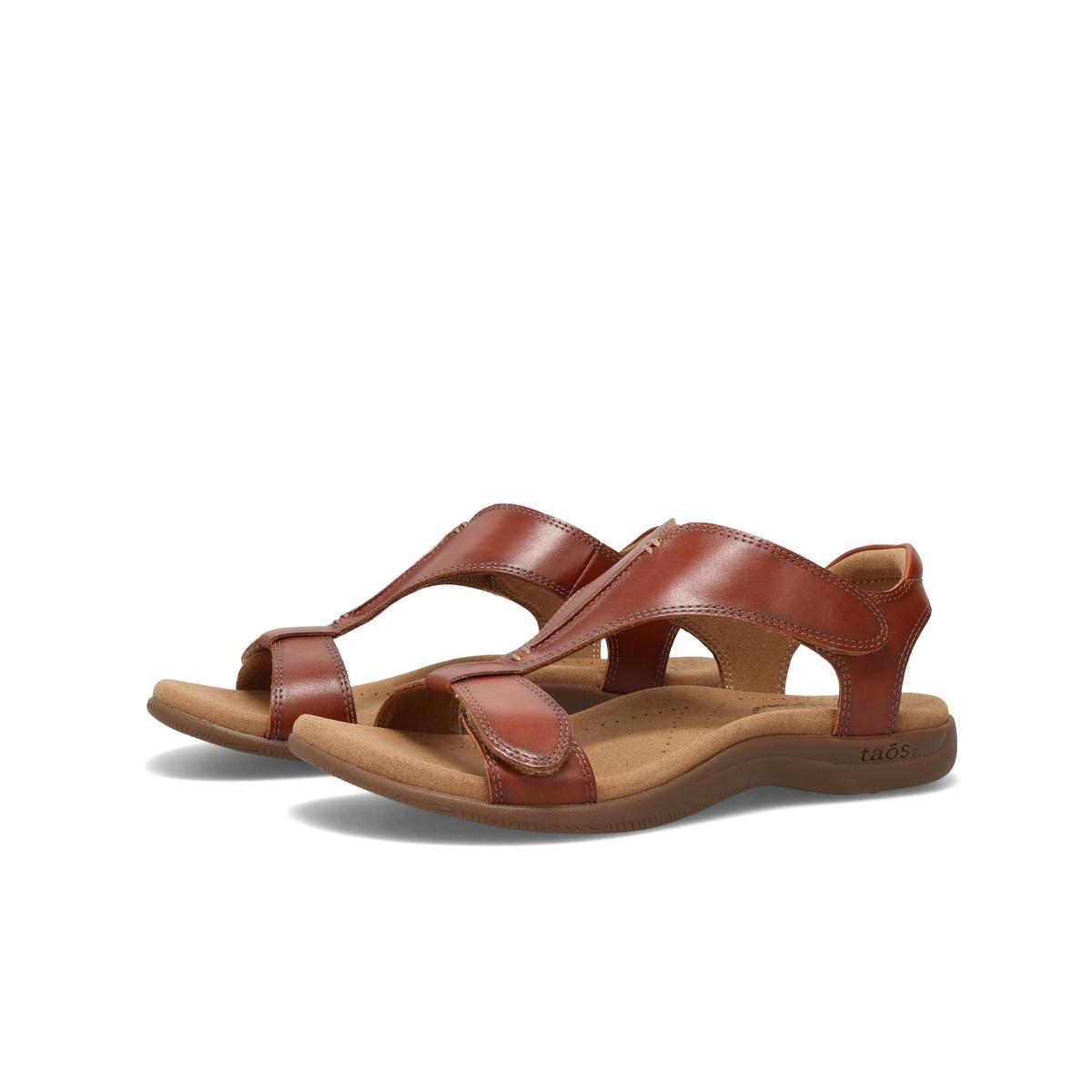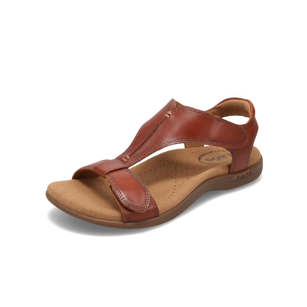Step into comfort and style with the women’s Taos The Show sandal. Crafted from soft imported Italian leather, it features a patented shield strap design with adjustable hook-and-loop straps for a secure fit. The SOFT SUPPORT™ footbed with Cool Recovery Foam® cushioning keeps feet comfortable all day, while the flexible rubber outsole makes it perfect for everyday wear—whether you’re pairing it with casual dresses, linen pants, or heading out for shopping, brunch, or travel days.